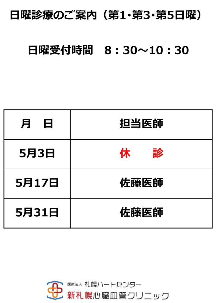 日曜診療のお知らせ