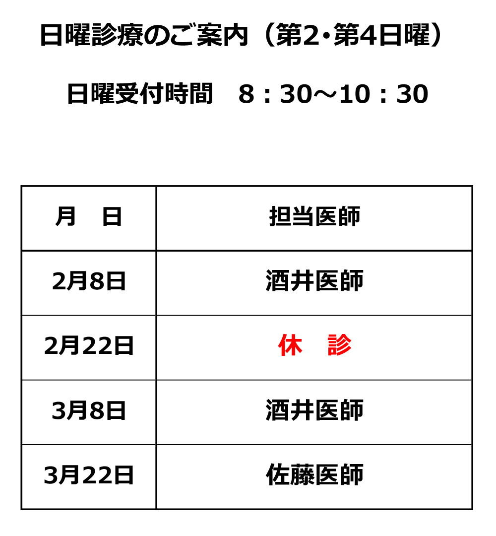 日曜診療のお知らせ